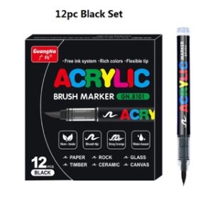 GUANGNA Acrylic Brush Markers Set, Straight Liquid Soft Tip Painting Art Pens, Non-Toxic No-Odor Artist Supplies for Black Paper