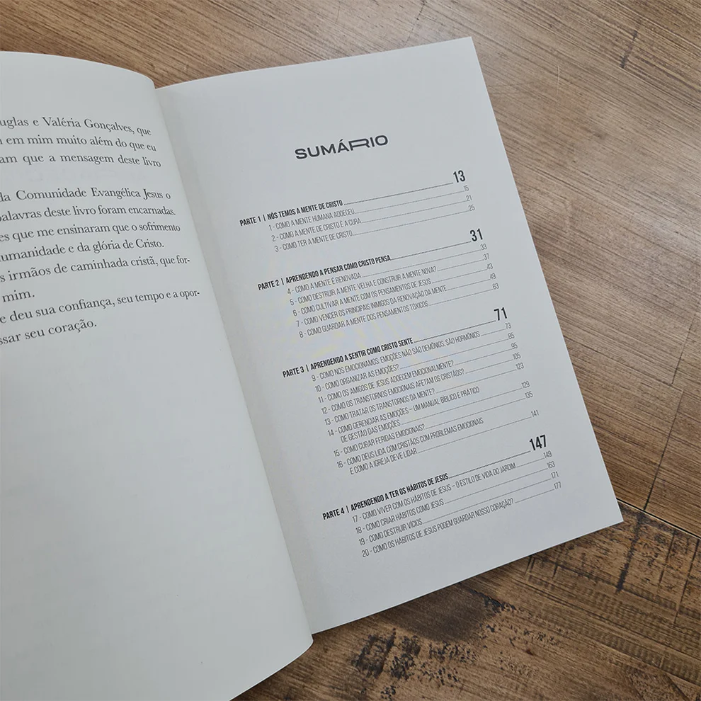 Se a Igreja tem e é a resposta de Deus para as perguntas que o mundo está fazendo, penso que chegou o tempo da maturidade e de nos posicionarmos com uma resposta inteligente, responsável e poderosa para o problema do sofrimento mental. Este livro é como um guia. Porque um guia não é o caminho, mas aponta para ele. Ao longo destas páginas, meu objetivo é, de forma prática, direcionar para um lugar e para um posicionamento que revela a mente de Cristo como a resposta para as dores da nossa mente e para um Estilo de Vida para o qual fomos criados, Nele e para a glória Dele.